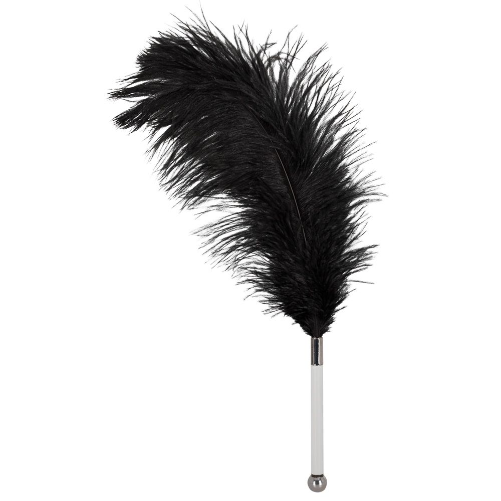 What about a bit of foreplay? Big, black ostrich feather on a wand made of acrylic glass (approx. 13 cm long, transparent/silver-coloured). Feather, wand: polyvinyl chloride. Contains non-textile parts of animal origin.