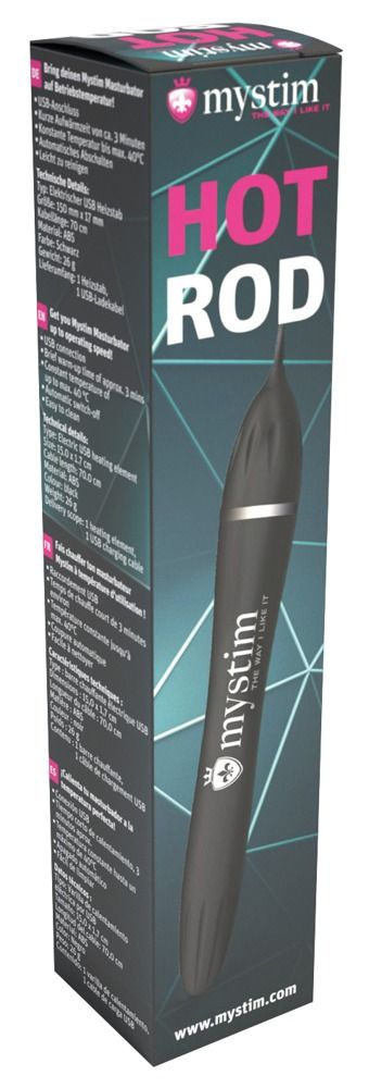 Varmestang, kompatibel med masturbatorerne fra Mystim, som Opus Mica. Den korte opvarmningsperiode på kun 3 minutter betyder, at selv de sejeste onanere opvarmes og er klar til brug med et øjeblik. Hot Rod er let at rengøre og har også en automatisk frakoblingsfunktion, der aktiveres, når varmestangen har nået en maksimal temperatur på 45 ° C - dette garanterer en stabil temperatur. Med en USB-port.