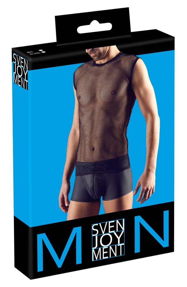 | Mærke | For brave men! All eyes will be on you when you wear this black coarse net shirt. Your body and muscles will be shown off in a wonderfully tempting way. With a round neck. With stitched seams. 100% polyamide. |