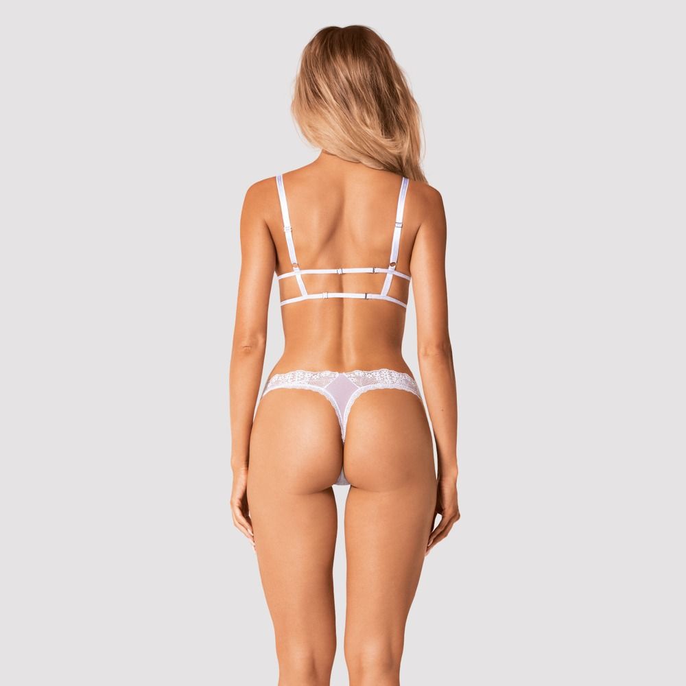 Perfect for summer – light and airy. Perfect for winter – if you miss wildflowers and hot summer days. The thong will beautifully accentuate your derriere, and flowery lace will complement your curves. In combination with self-supporting stockings and lacey gloves from the same collection, you will feel gloriously… sensual. Heavenlly, even?