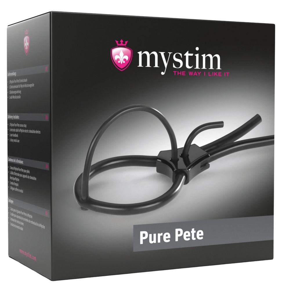Pure Pete, eStim glansløjfen sidder sikkert omkring glansens korona og sender prikkende impulser til den sorte silikonebue, som derefter stimulerer glans. Glansløjfen med 2 mm-stikket kan justeres til maks. 7,5 cm og kræver en stimuleringsenhed, f.eks. vare 0528927 0000 eller 0529761 0000, for at aktivere polerne. Materiale: platinsilikone, ABS.